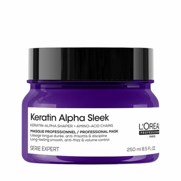 Máscara profissional Keratin Alpha Sleek L'Oréal Professionnel, formulada com Modelador Keratin-Alpha e cadeias de Aminoácidos....