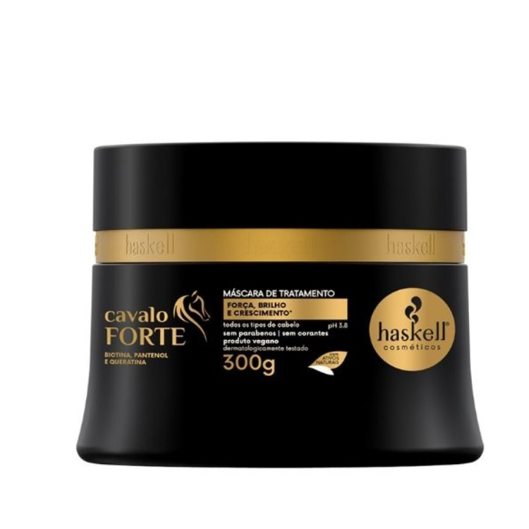 A Haskell Cavalo Forte Máscara de Tratamento é indicado para todos os tipos de cabelo. A sua fórmula promove a hidratação, enquanto reconstrói e fortalece as fibras capilares. Também dá brilho ao cabelo e ajuda no seu crescimento. pH 3.8, vegan e sem parabenos ou corantes.