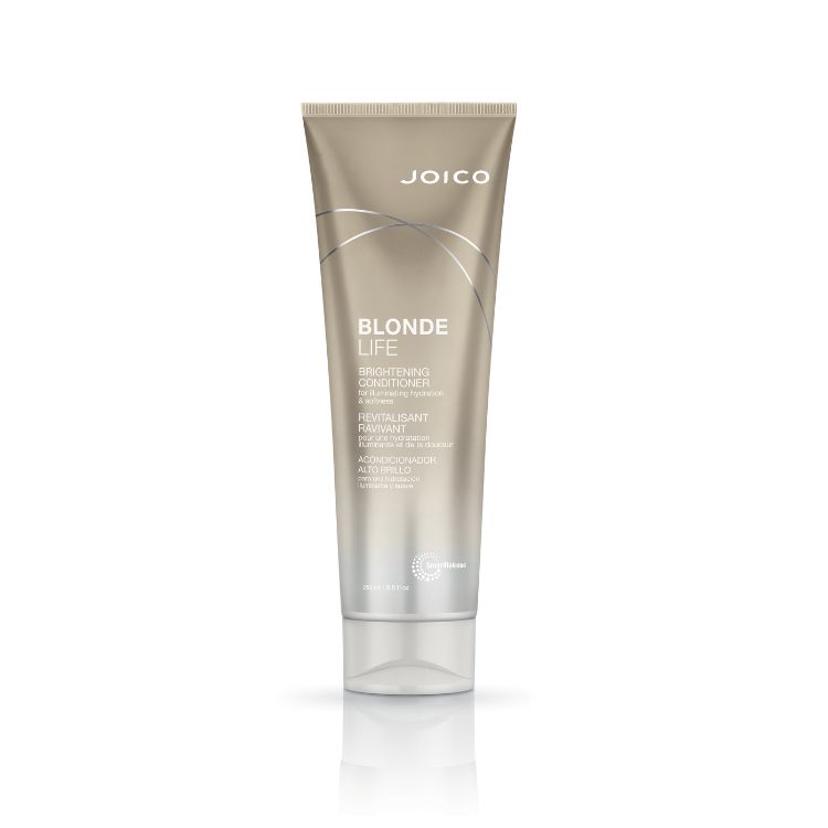 O Joico Blonde Life Condicionador é um condicionador desenvolvido para cabelo louro que combate os tons apagados, o frizz e a secura. Enriquecido com óleos de coco, girassol e cártamo, proporciona hidratação profunda e um brilho champanhe radiante. A sua fórmula ajuda a desembaraçar e suavizar o cabelo, deixando-o com um aspeto saudável, luminoso e sedoso. Indicado para todos os tipos de cabelo louro, incluindo cabelo natural, descolorado ou com madeixas.