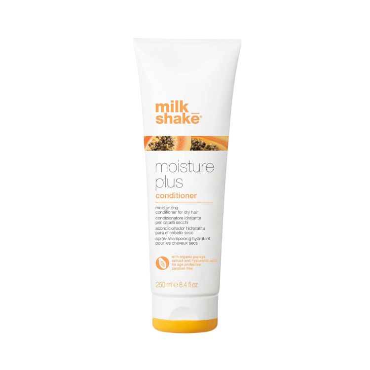O Milk_Shake Moisture Plus Condicionador é ideal para cabelos secos. A sua fórmula com Extrato de Papaia e Ácido Hialurónico condiciona e mantém o equilíbrio ideal de humidade no cabelo, enquanto protege a coloração e tem propriedades de anti-envelhecimento. O seu cabelo fica mais maleável e com um toque suave.