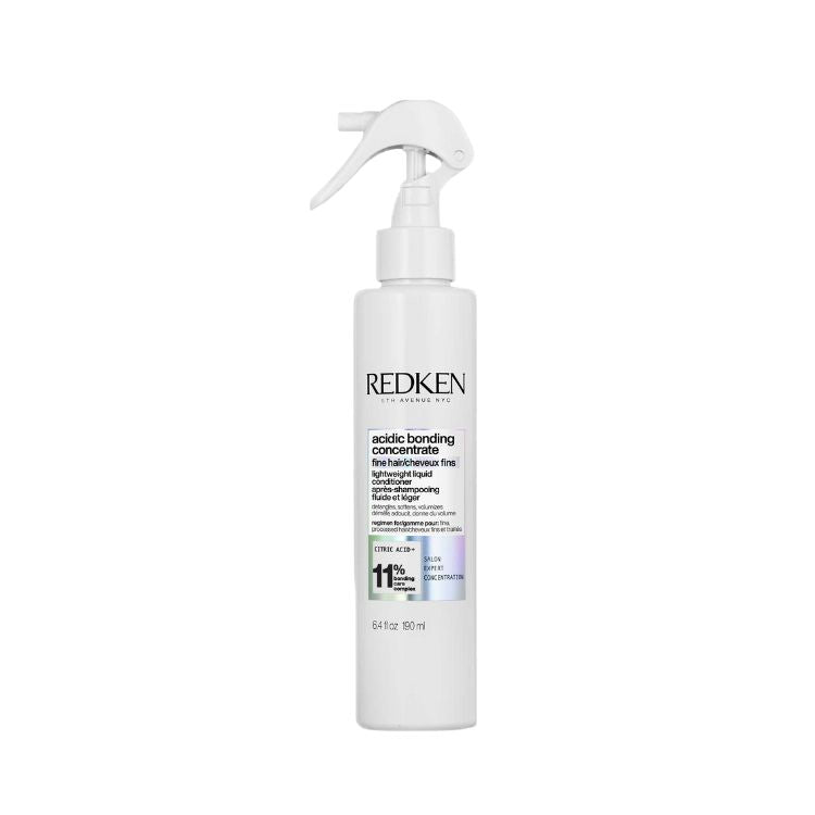O Redken Acidic Bonding Concentrate Condicionador em Spray é formulado para dar fixação e suavidade aos cabelos finos. Sendo um condicionador pulverizável, é rapidamente absorvido pela fibra capilar e não deixa resíduos. Com uma utilização regular, dá mais força ao cabelo e proporciona um acabamento leve. Também é formulado com um pH ácido para proteger a cor e dos efeitos negativos da coloração, aclaramentos ou fontes de calor.